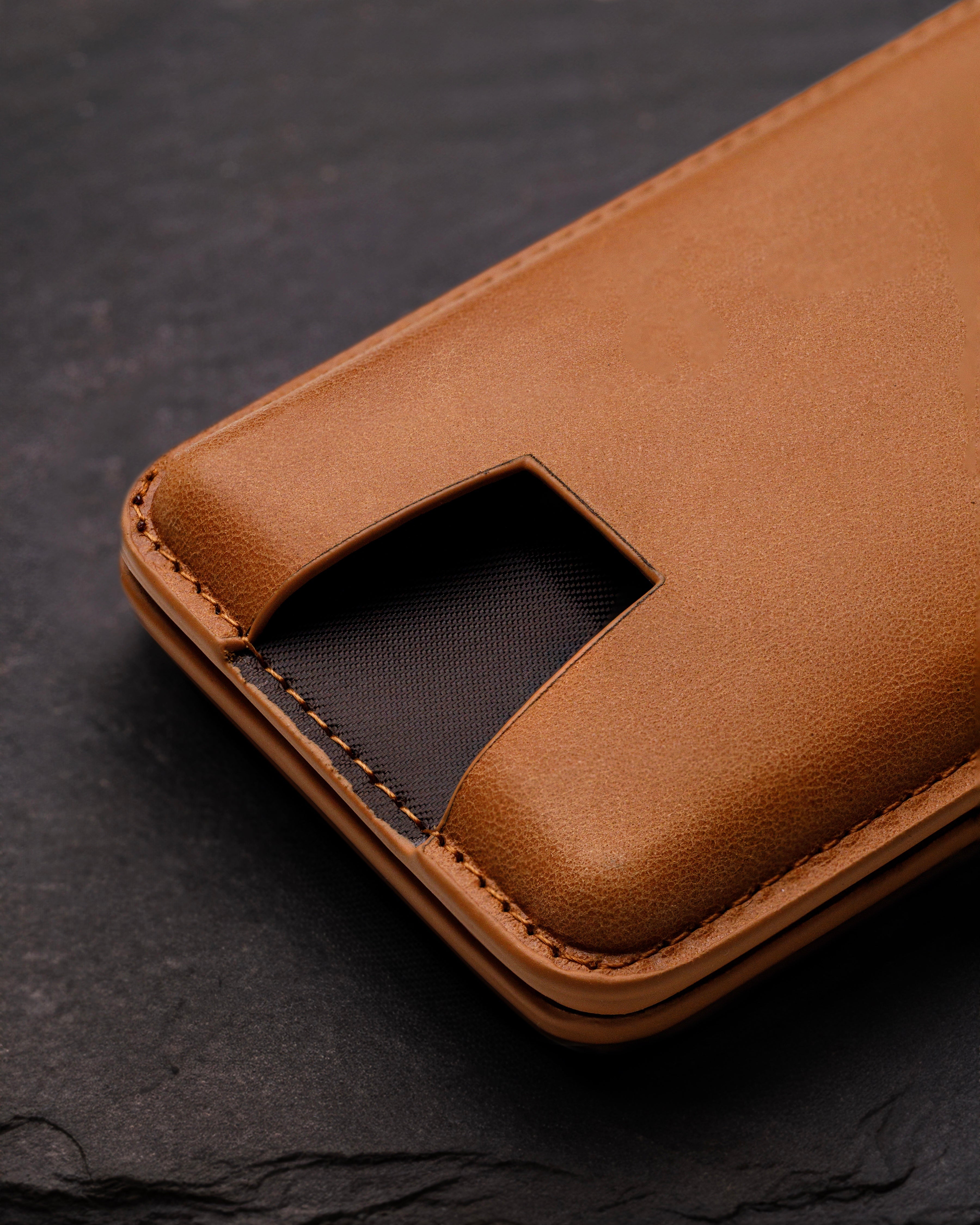 Quick access pocket aan de voorkant voor uw meest gebruikte kaarten. Met een dikte van slechts 1,4 cm biedt de wallet voldoende ruimte zonder uw telefoon volumineus te maken.